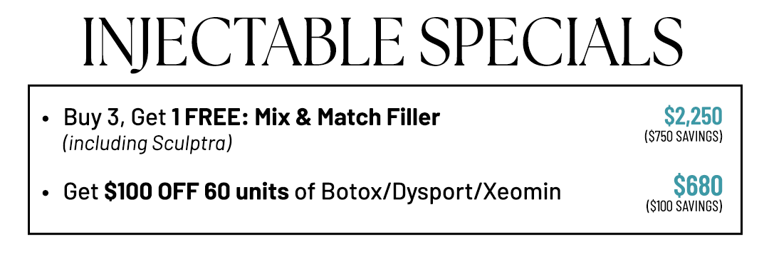 Plus, take advantage of our best injectable pricing of the year and leave with a treatment plan designed just for you!