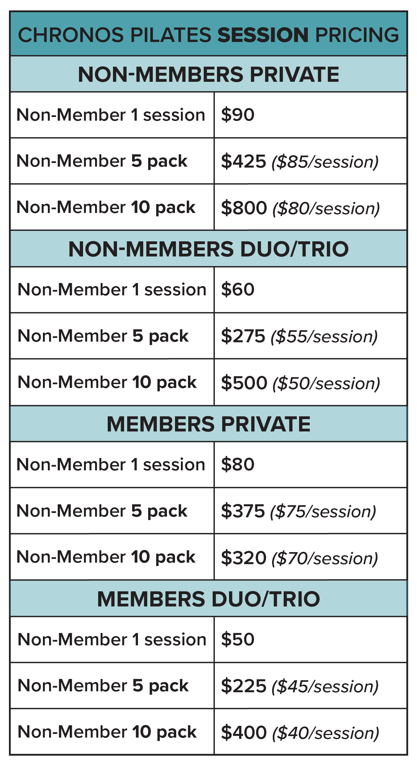 Pilates Studio Pricing